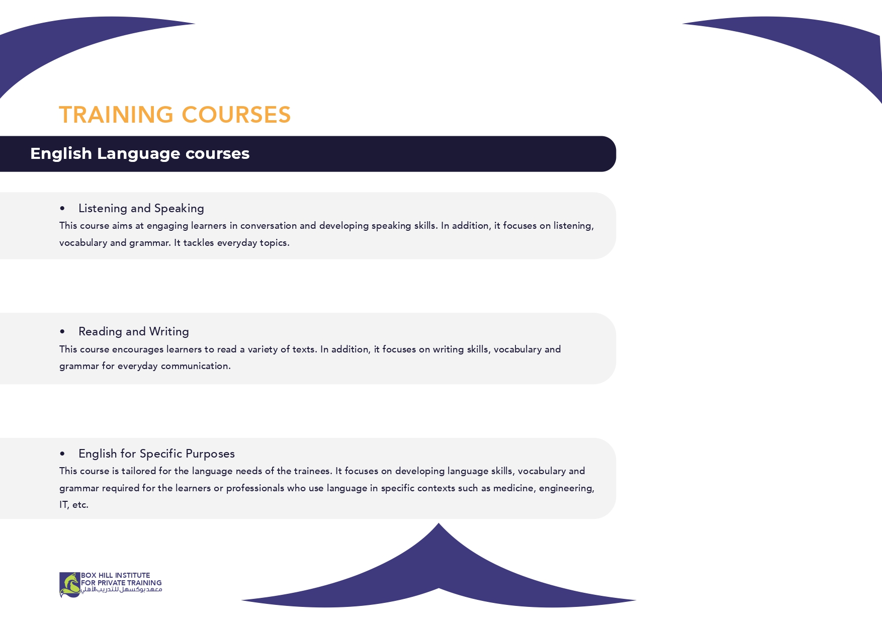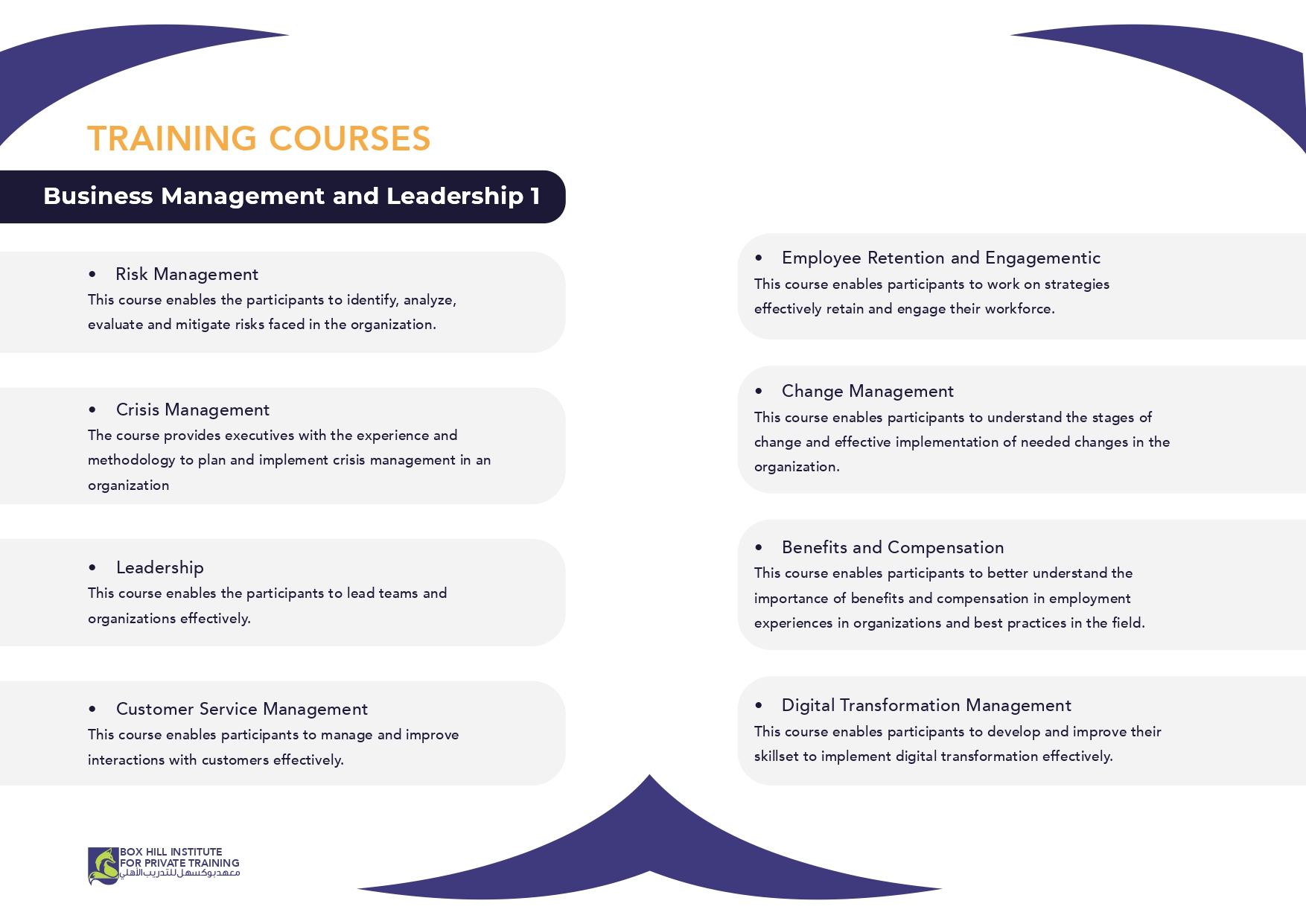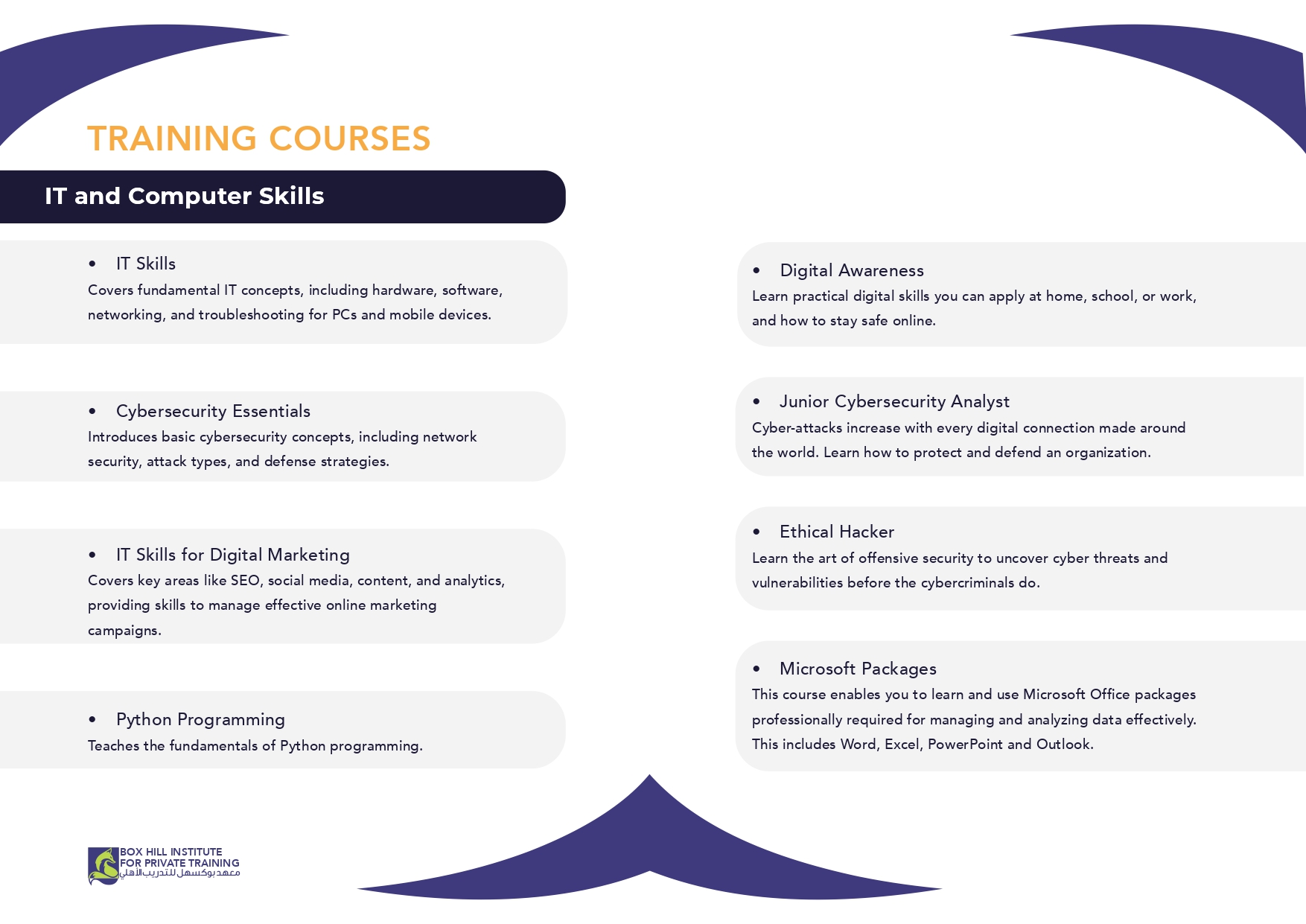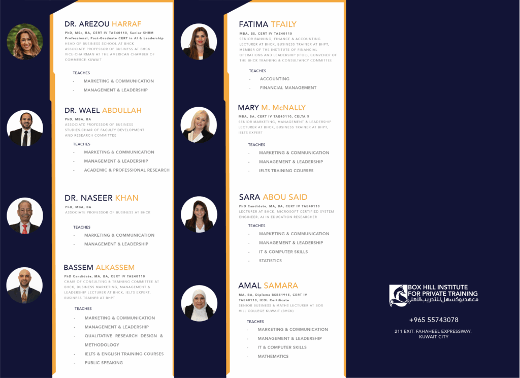 Box Hill Institute for Private Training (BHPT) was established in 2024 to develop and deliver tailor-made worldclass training courses and programs to cater for needs of the public and private sectors, industries, and society at large in the State of Kuwait and the GCC Region.