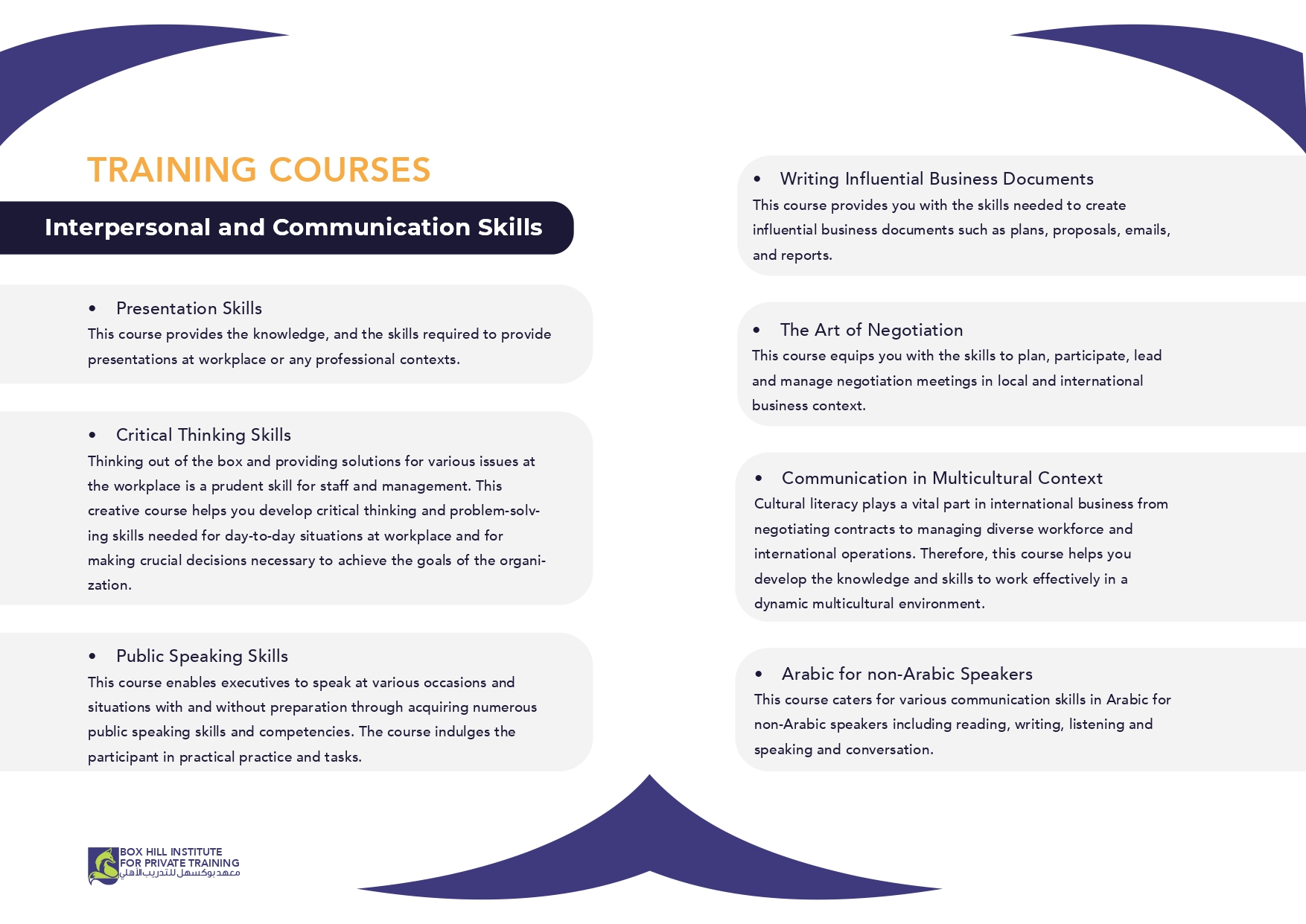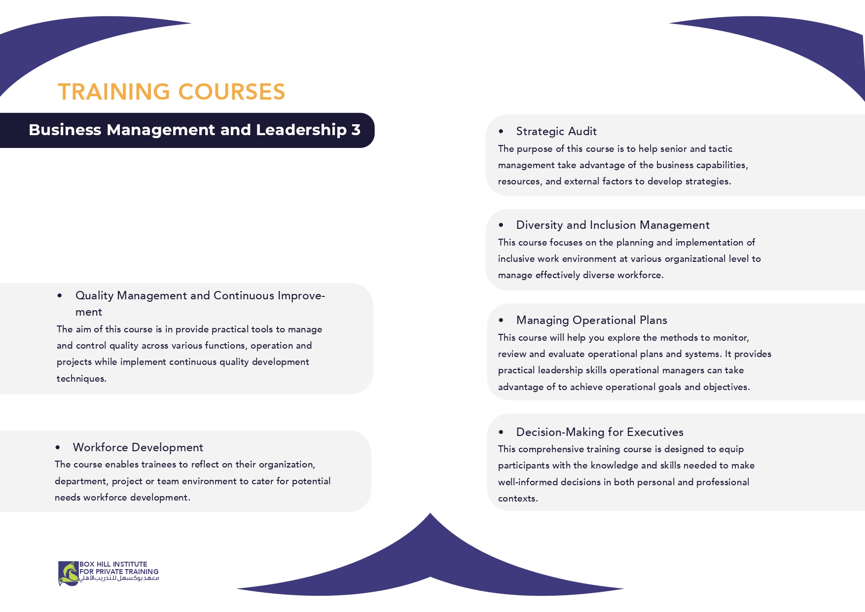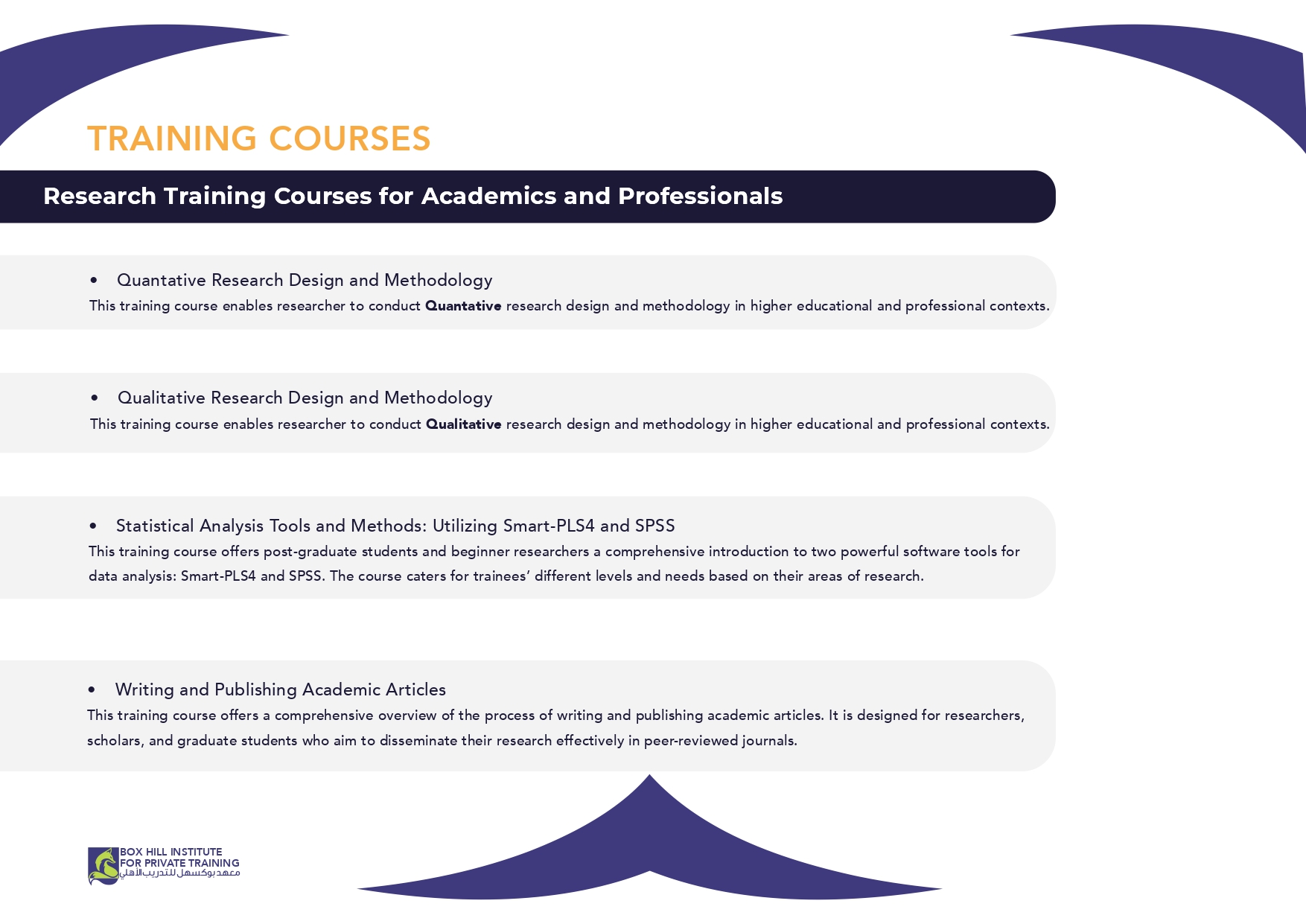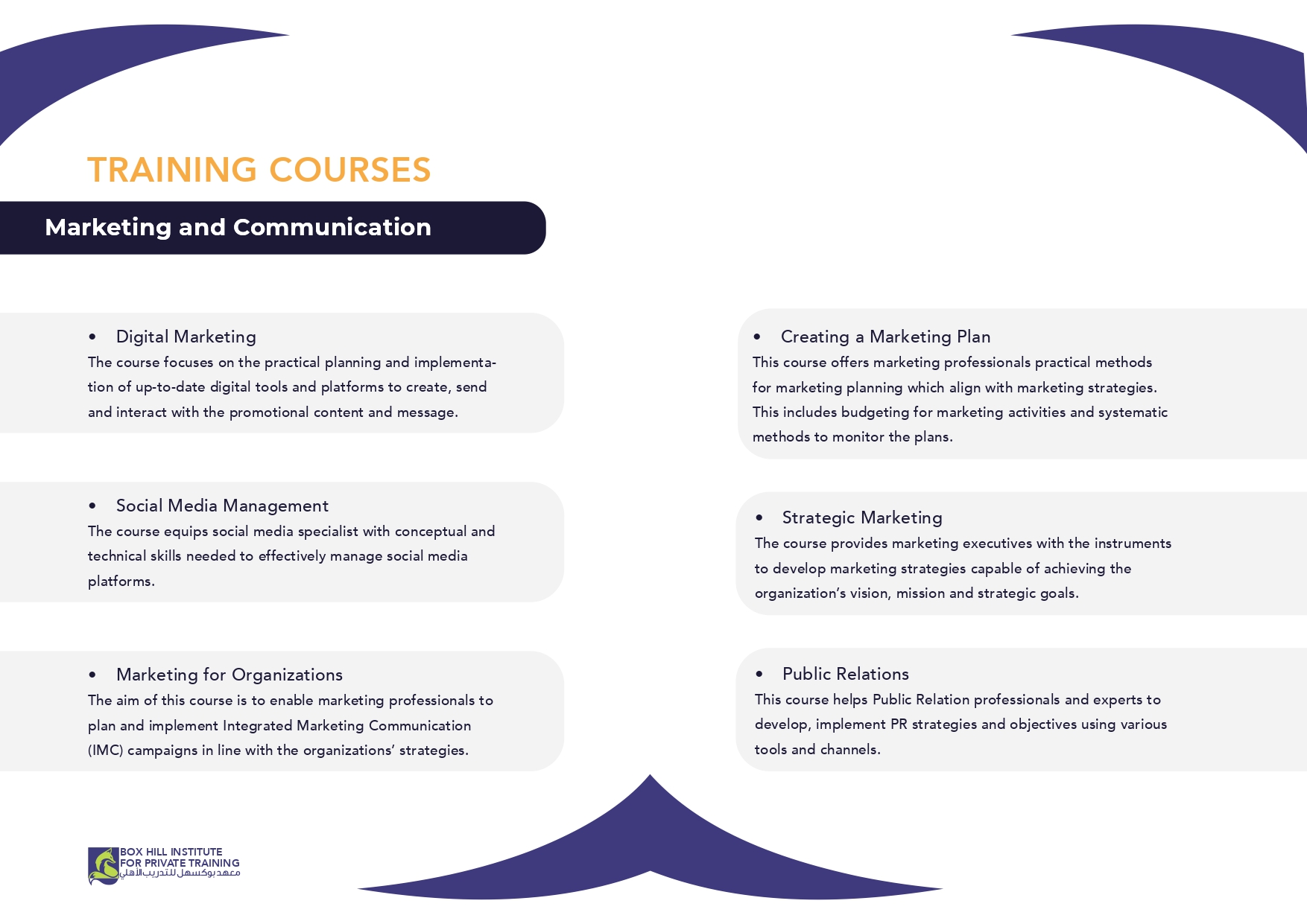 Box Hill Institute for Private Training (BHPT) was established in 2024 to develop and deliver tailor-made worldclass training courses and programs to cater for needs of the public and private sectors, industries, and society at large in the State of Kuwait and the GCC Region.